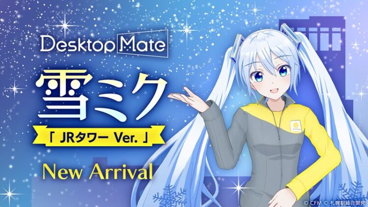株式会社インフィニットループ(本社:北海道札幌市、代表取締役社長:小野真弘)は、デスクトップマスコットプラットフォーム「Desktop Mate」において、北海道を応援するキャラクター「雪ミク」のDLC『雪ミク「SNOW MIKU 2026 Ver.」』および『雪ミク「JRタワー Ver.」』を2026年2月5日(木)より同時リリースすることをお知らせいたします。本日よりSteamストアページを公開し、ウィッシュリストへの登録が可能となりました。