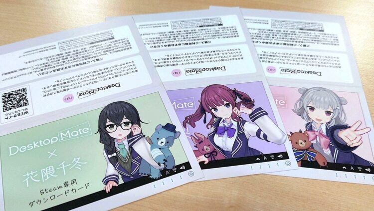 「小春六花」「夏色花梨」「花隈千冬」をはじめとしたダウンロードカードを販売します。カードに印刷された Steam の製品コードを入力すると、DLC をダウンロードできます。Steam と同じ価格(各2,200円)で、オリジナルデザインのカード&製品コードが付いてきます。